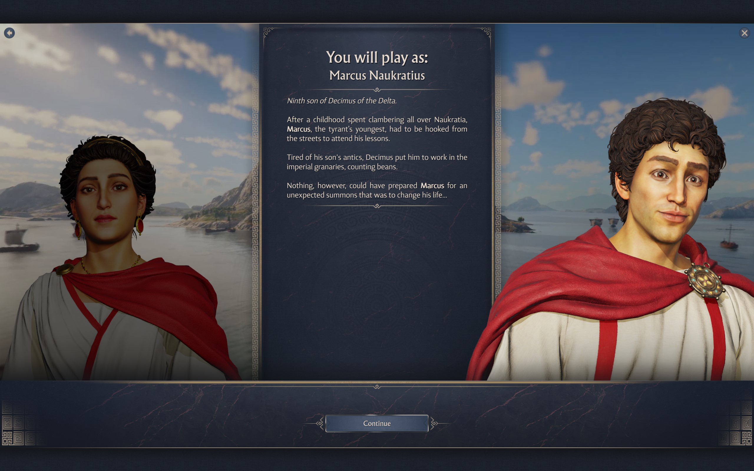 Son yıllarda birçok oyunda gördüğümüz şekilde 2 farklı karakterden birisini seçerek başlıyorsunuz oyuna. Bu karakterlerden ilk Marcia Tertia (3. Marcia), Decimus’un kızı. Diğer karakterimiz Marcus Naukratius ise, Decimus’un oğlu. İki karakterin hikayelerinde ufak tefek değişiklikler söz konusu olsa da nihayetinde senaryo büyük oranda aynı şekilde ilerliyor ve aynı noktaya varıyor.