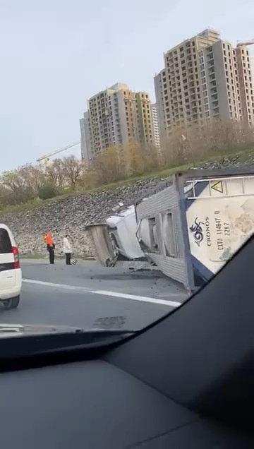 Esenyurt TEM’de tanker devrildi: Trafik kilitlendi
